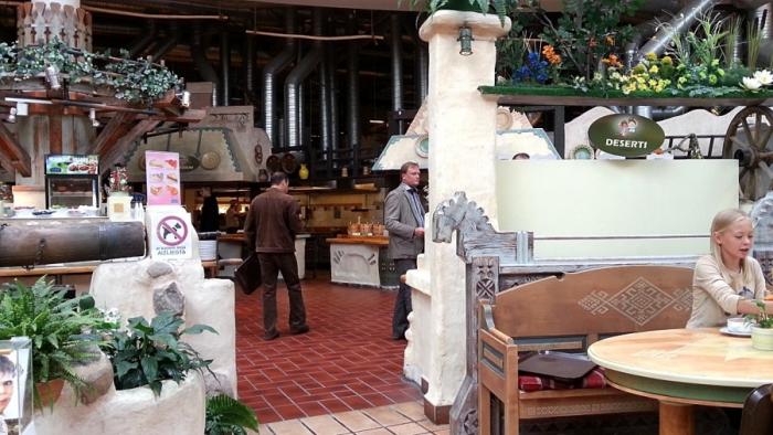 В планах на следующий день было — посещение парочки торговых центров, обед, причём желательно отведать латышскую кухню, ну и дорога домой. Из торговых центров был выбран SPICE www.spice.lv/ru, потому, что там есть RIMI www.rimibaltic.com/ (хотелось купить латышские продукты питания и сувенирчики типа бальзама рижского для друзей) и LIDO www.lido.lv/rus/, тут планировалось отобедать на дорожку.Про торговый центр SPICE писать ничего не буду, центр как центр, только очень большой, он моментально украл часов 5 времени, при том, что мы не пошли в SPICE HOME — там всё для дома и интерьера.Наступила пора покушать в дорожку и мы тут же на 2-ом этаже посетили LIDO.LIDO- это сетка демократичных бюджетных ресторанов, построенных по принципу самообслуживания.Ходишь с подносом и набираешь всё, что тебе нравится, потом топаешь на кассу.Спокойный интерьер, стилизованный вроде под старую латышскую деревню