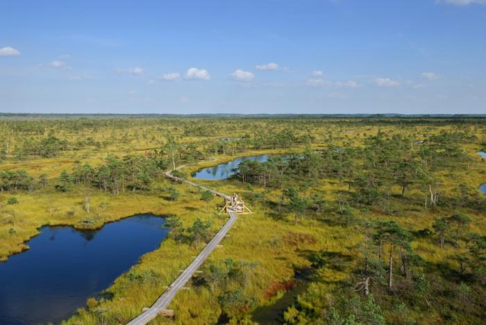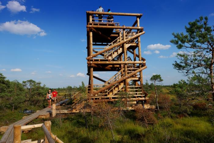но суть дела от не меняется — всё равно это просто болото.100 лет назад у меня были попытки заняться сбором клюквы и я видел таких болот много, только без мостков. Даже видел болото, когда наступаешь ногой, то по траве и кочкам идёт большая волна, как по воде.Да ещё мостки проложены очень хитро — вроде как башня смотровая близко, метров 200-300, а потом мостки резко меняют направление, и ты топаешь, удаляясь от башни.Прогулочным шагом до башни час, жена быстро поняла эту замануху и покинула меня через 20 минут, а я наконец-то добрёл до башни.