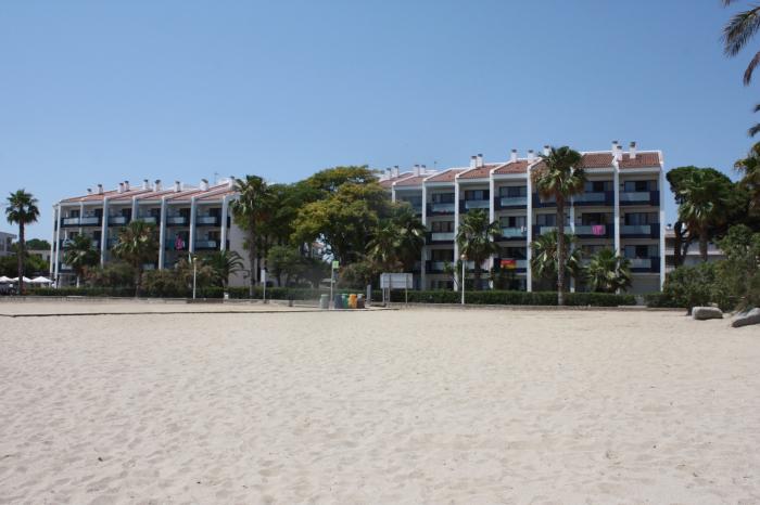 Апартаменты называются Pins Platja , состоят из 6-ти корпусов, 4 корпуса как отдельно стоящий комплекс в центре с бассейном на одной стороне дороги и 2 корпуса напротив. Из этих 4-х корпусов — у 2 корпусов часть окон выходит на железную дорогу (которая проходит по всему городку). А нам достались апартаменты на первой линии от моря (те 2 корпуса, что стояли напротив) минус один в каждом корпусе на первом этаже пабы. В нашем — Ирландский. Апартаменты мы выбрали исключительно из-за парковки (подвал корпуса), когда многие апартаменты не имели своей парковки или она была на улице. А вдоль улицы от непонятной пыльцы машины можно было не узнать.