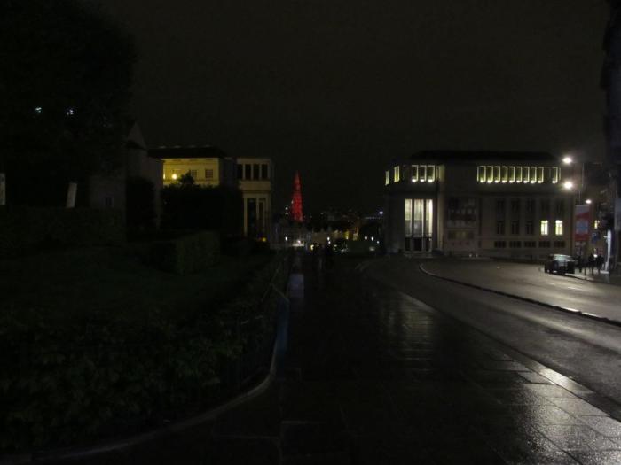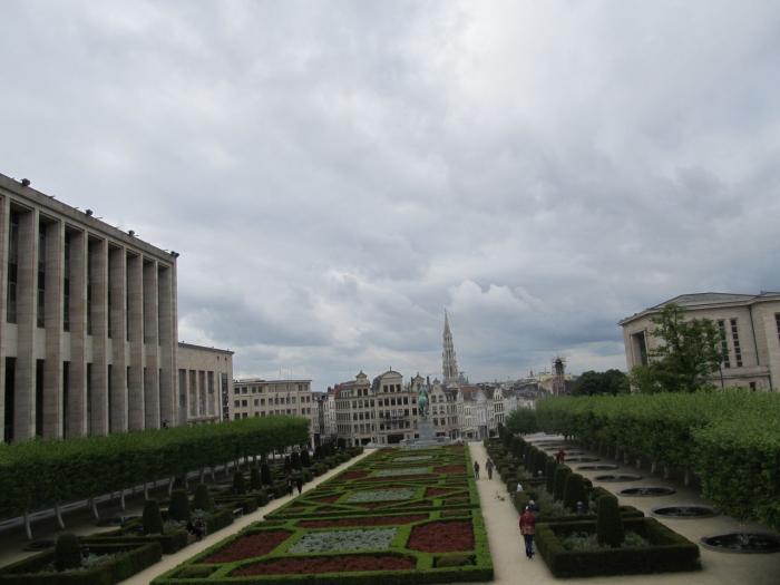 Несмотря на относительно неблагополучный район расположения нашего отеля, он оказался в пешеходной доступности от центра города, что и предопределило наши дальнейшие действия. Но день начался не с прогулки, в начале я перестраховался и перепарковал автомобиль на платную стоянку. Не испугала даже высокая цена парковки в 15€ за сутки. Сбросив груз ответственности за авто, мы выдвинулись в центр к городской ратуше. Осмотр города мы начали со смотровой площадки, расположенной на площади Дворца Правосудия. Панораму города несколько «портил» дождь, но даже отсутствие дождя вряд ли добавило очков Брюсселю.