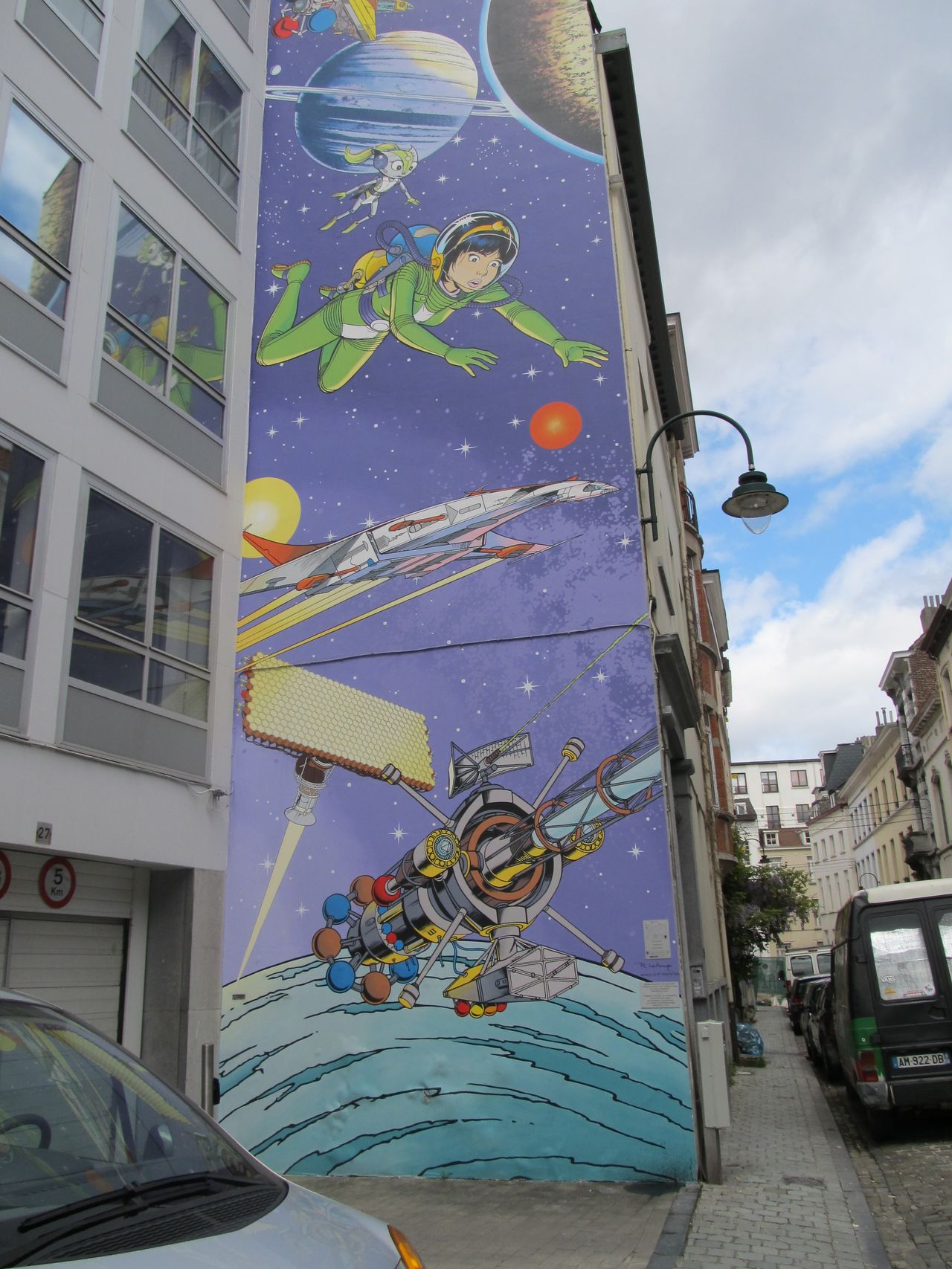 После ратуши мы немного покрутились по историческому центру. Ничего интересного не найдя, мы решили обратиться к «народному» Бельгийскому творчеству:) Граффити… Брюссель просто напичкан граффити под «завязку» и это не просто каракули на стенах — это искусство (почти как шоколад). Администрация города, придумала оригинальный способ борьбы с настенными художниками, она… выделила бюджетные средства на закупку красок:) И сейчас граффити столько, что уже есть несколько маршрутов по улицам города, с настенными «картинами» различного тематического содержания. В туристических инфопунктах за 0,5€ вы сможете приобрести подробные карты маршрутов с самыми интересными граффити, в частности такой пункт есть в здании Городской ратуши. По одному такому маршруту мы прошли. Вот несколько фото с мест событий: