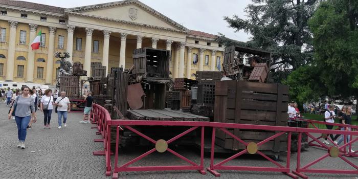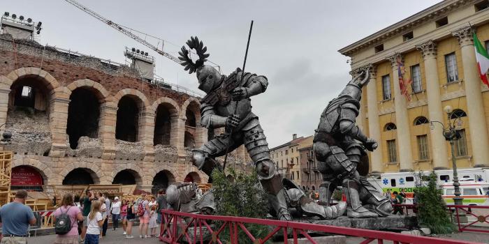 Декорациям явно не хватало места на арене — оперный фестиваль «Арена ди Верона» тут каждое лето