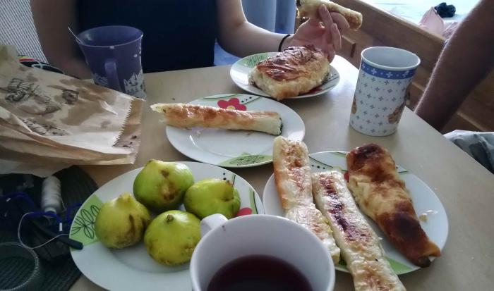 А вот наш местный завтрак: горячая пита с разными начинками и смоква