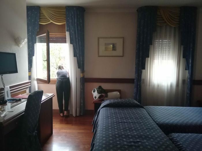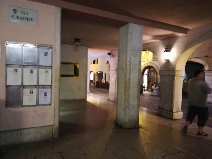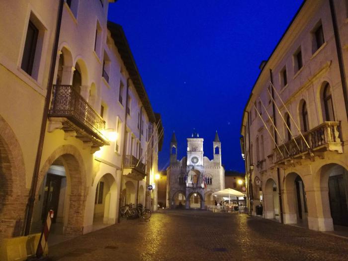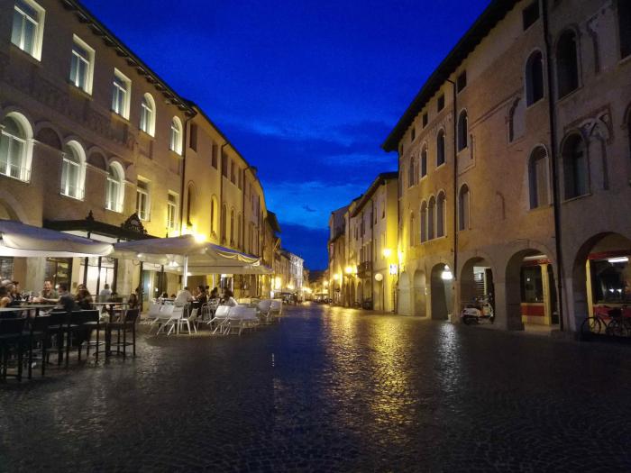 Городок, в который мы попали совершенно случайно, потому как путеводители обычно сюда не заводят. У нас же это чУдное место было просто по дороге. Вернее не так, — нас в это место привел… родной Сбербанк, не преминувший сунуть ложку дегтя в наш отпуск. Ой, не могу не рассказать. Мужу позвонил молодой человек из колл-центра и сообщил, что его карточку их умная программа заблокировала, углядев подозрительные операции по ней за рубежом. Сделано это было «в защиту клиента», и, если карточка не утеряна, то ему, как защищенному клиенту, нужно подойти с ней в ближайший офис сбербанка, чтобы разрешить ситуацию. Муж, стоя посреди австрийского города Грац с карточкой в руках, пытался объяснить, что он ничего не терял, что он сам находится за рубежом, офис ему подвернется в лучшем случае через 2 недели, и ничего подозрительного он не совершал. Но… с программой в эпоху цифровизации спорить бесполезно. Хотя молодой человек и обещал с ней разобраться и перезвонить. Но, ожидаемо не перезвонил, и, судя по всему, не разобрался – потому как через считанные часы посыпались отмены брони большинства отелей нашего едва начавшегося тура. Хорошо еще что мы, как люди опытные, не клали все яйца в одну корзину, имели с собой карточки менее продвинутого, но куда более надежного Тинькоффа и другие… Иначе — прощай отпуск… Но отели, к сожалению, висели на сберовской. Некоторые, самые важные – «без отмены бронирования», то есть деньги не возвращались… А перебронировать в разгар сезона то, что тщательно выбиралось в предыдущие полгода подготовки, оказалось нереально. Это уже не говоря про взлетевшие цены… Вот таким вот образом в итоге мы и попали в город Порденоне, где выбор отелей вполне еще был, — как и в другие незапланированные места нашего, все же состоявшегося всем сбербанковским программам назло, тура.