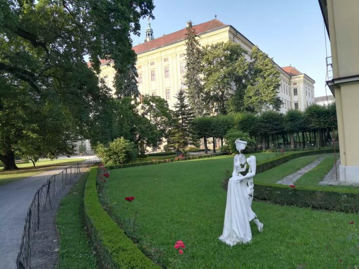 К сожалению, во дворец (епископскую резиденцию) Кромержижа не успевали по времени, жаль, интерьеры там, судя по путеводителям, шикарные… Но примыкающий к нему сад с утра тоже неплохо бодрил. То кролики выскочат, то павлины заорут, то современные инсталляции по мозгам шарахнут