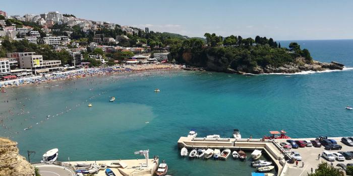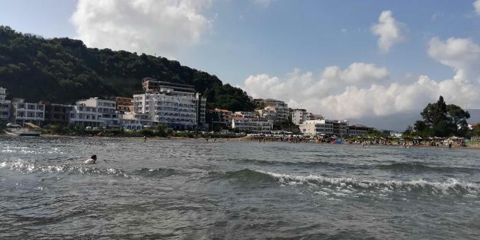 В обзорах по побережью Черногории среди немногих минусов обычно упоминается перенасыщенность пляжей, кафе и вообще всех популярных курортных мест. Кажется, нам повезло – несмотря на то, что мы попали в эту страну в самый высокий сезон, начало августа, — место, выбранное для нескольких дней пляжного отдыха, было далековато от насиженных российскими и прочими туристами- почти на границе с Албанией. И потому толпы здесь были лишь в самом центре, на городском Малом пляже. А все чуть удаленные от него пляжные места – это сочетание красивейшей черногорской природы, чистейшего моря, соснового воздуха, лечебного вулканического песка и достаточно приятных отдыхающих здесь черногорцев, албанцев, австрийцев, немцев.