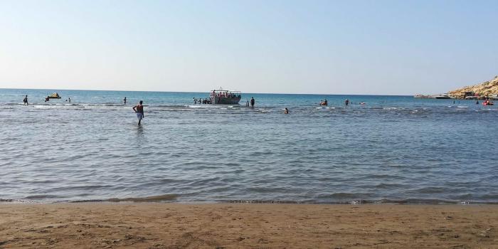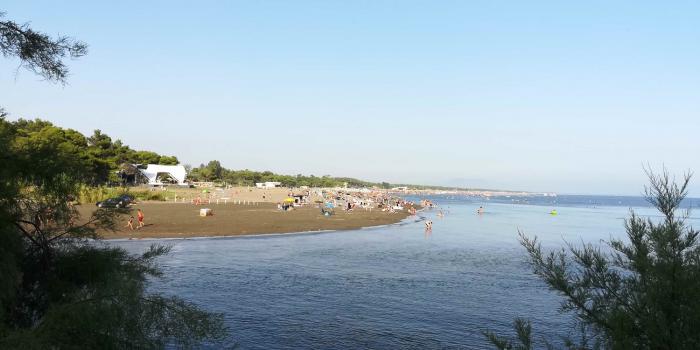 Велика Плажа, в начале котороого мы сняли апартаменты, тянется аж на 12 км. Особенности этого места — темный, нелипнущий к коже песок (говорят, жутко целебный) и мелководье. Даже посадка на прогулочные катера и водное такси идет метрах в 50 от берега.