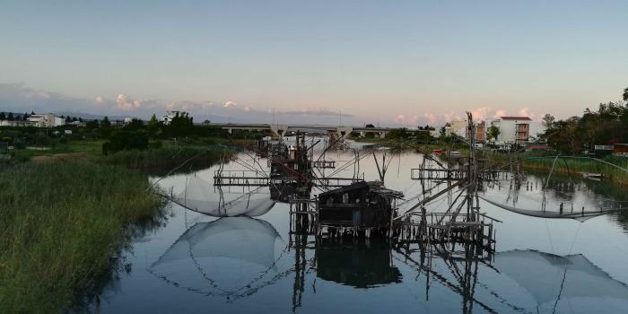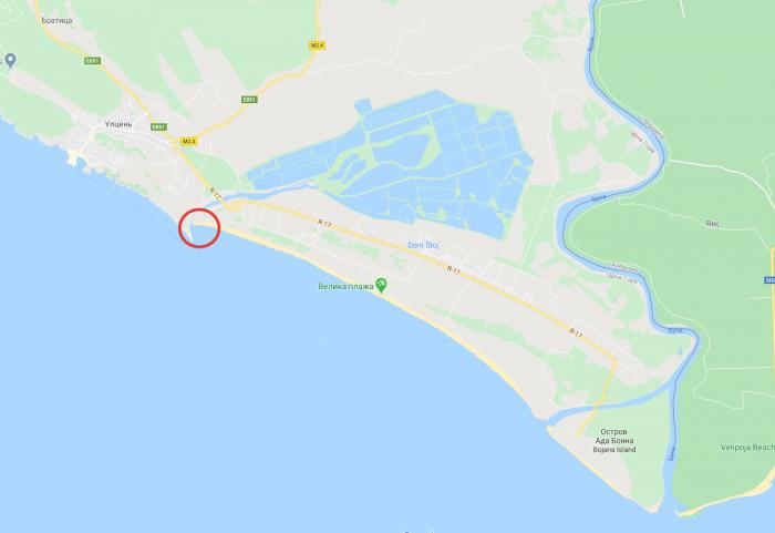 Еще из особенностей этого места (на карте — красным кружком) — устье рукотворной реки Порт Милана. В конце 19 века этот канал был прорыт по проекту русского инженера от заболоченных мест Загансжкого озера, чтобы прекратить подтопление поселков и снизить уровень малярии. Кстати, о самом озере — здесь до начала 21 века добывалась морская соль на предприятии, которое известно как улцинская Солана. Сегодня соледобыча остановлена, но вся местность является природным неофициальным птичьим заповедником — здесь встречается почти половина зарегистрированных в Европе видов птиц. В том числе и фламинго. Официальных экскурсий в это место нет, хотя добраться, как пишут в сети, можно. Там же, в сети, вычитали, что вблизи фламинго не увидишь, да и нет их там в августе… Зато не единождылюбовались местными достопримечательностями — рыбацкими каливарами на реке-канале Порт Милена: