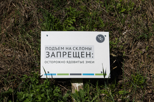 Гулять приятно и радостно, но нужна некоторая осторожность, везде вдоль троп стоят предупреждения о ядовитых змеях, и не успели мы выскользнуть с населенной территории Дивногорья, как нас уже обшипели и напугали. Они тут есть, таблички не врут.
