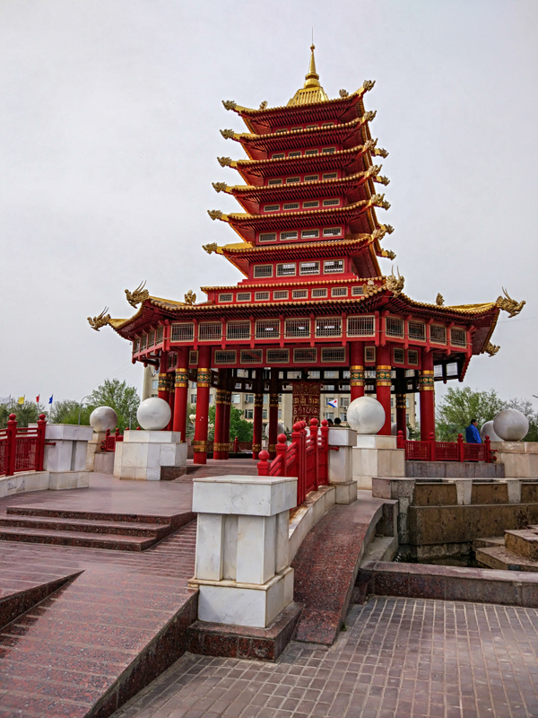 А в остальном, красивая арка с традиционной восточной росписью, если бы не парковка, было бы очень круто. Сама пагода семи дней смотрится величественно.