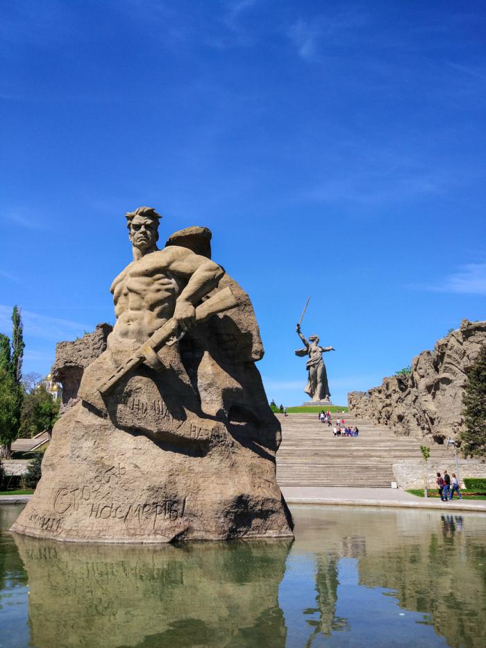Утро. Свежие, выспавшиеся мы, конечно, отправились сразу на Мамаев Курган, к ансамблю Родина-Мать. Погода – прелесть, сирень, каштаны, всё цветет и благоухает. Описать сам ансамбль я даже не буду пытаться, слов всё равно не хватит.