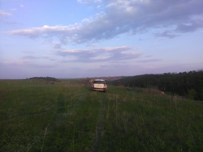 Но это была не наша судьба. Когда проскочили, сзади увидели Ладу Гранту, с противоположной стороны лужи, соваться в которую мы не решили. Проехали метров пятьсот, когда до нас дошло – а ведь он-то не проедет. Возвращаемся, Гранта грустно сидит в луже, рядом дед, почти по колено в чиче, задумчиво чешет затылок. Говорит второй день едет, отвозил знакомых в Красный Лог, решил обратно сократить лугами. Вчера зарылся в Волгоградских песках, нарубил деревьев, выстроил там «дорогу жизни» но выбрался, сам. Устал, заночевал в машине, с пяти утра сегодня полями пробирается, доехал до этой лужи. Вытащили, посмеялись – хорошая карма у деда, мы уперлись в заповедник, случайно попали сюда, зависли с проездом ямы, только для того, чтобы его вытащить из лужи. Чудесны хитросплетения судеб.