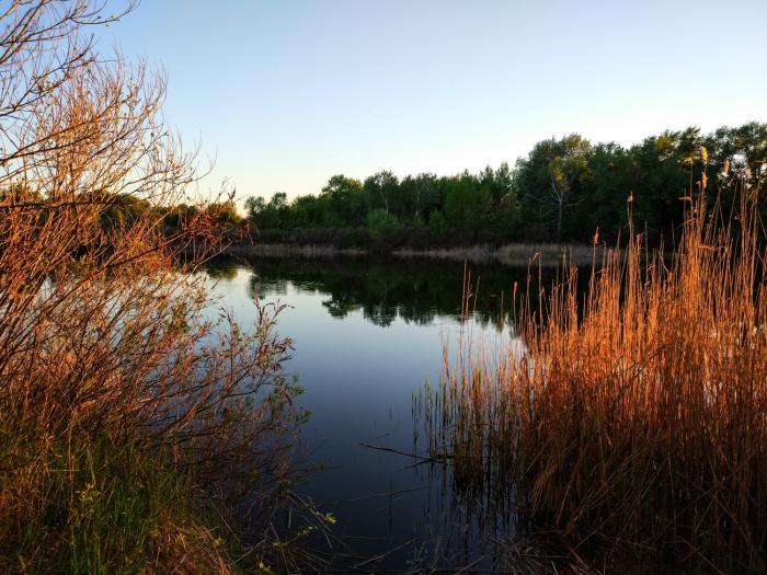 Сначала всё шло недурно, грунтовые тропки выводили в нужную сторону, но чем ближе к воде, тем становились глубже и страшнее лужи, уперлись в очередную, где для Йети риск был уже совсем велик, а озеро-то слева, за пролеском, вот-вот. И солнце сядет скоро. Бегу топтуном, смотреть, где и как мы сможем проехать, нахожу, но путь преграждает очень суровая яма, которую можно объехать по краю, но запас сантиметра три.