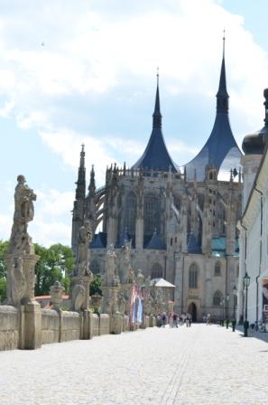 Дороги в Чехии отличные, ехать сплошное удовольствие, мы быстро добрались до Кутно Гора. (Расстояние 400 км, менее 4 часов) Навигатор привел нас в центр города. С парковкой в этом городе нет проблем, мы нашли свободное местечко возле собора святой Барбары, и пошли осматривать старый город. Собор святой Барбары очень красивый снаружи, а внутри смотреть нечего, очень разочаровал он меня. Зато вокруг вид на горы и старый город, просто превосходный, очень понравилась галерея фигур возле собора.