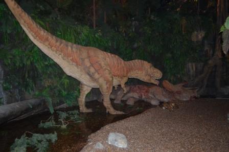 В музее можно взять аудиогид, выбор языков – немецкий, французский и английский. Я так не знаю английский, чтобы экскурсии на нем слушать, поэтому мы взяли входные билеты, и собрались самостоятельно осматривать музей, но барышня на рецепции нас остановила и предложила подождать 10 минут, и идти с группой школьников, которые как раз выгружались из автобуса. Нам повезло, группа школьников оказалась из Польши, и с переводчиком. Так мы слушали экскурсию на польском и переводили Наташе, которая у нас по-польски не понимает. Сначала нам показали фильм о происхождении нашей планеты, потом повели по залам, где рассказали о древнем суперконтиненте Гондвана и происхождении растений и древних видов животных, их эволюции, и вплоть до падения метеорита и вымирания динозавров. Под конец показали фильм в 4Д, про жизнь и гибель динозавров. Музей рассчитан на возраст 8-13 лет, маленьким там будет страшно, все эти динозавры там очень реалистичные, двигаются и кричат, поэтому малышей туда водить нельзя. И конечно там сложно все это понять без нормального перевода, нам просто повезло, поэтому было интересно и понравилось.