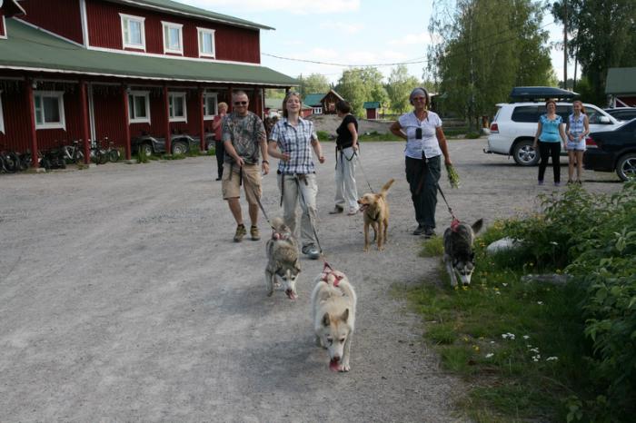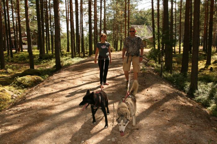 Нацеленность на работу с человеком у них бесподобная, в чем мы и убедились сполна, пойдя на пяти километровую пробежку с собаками. Все просто – на собаку одевают шлейку, на тебя обвязку. И побежали…