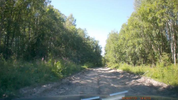 Чем ближе к Петрозаводску, тем лучше становится дорога. До базы остается каких-то 2-2,5 часа пути. И вот тут, свинью нам подложил навигатор. Дело в том, что проложить нужный нам маршрут из Кириллова до турбазы получилось только с помощью программы IGo Primo, да и то, только после того, как в ее настройках было разрешено прокладывать маршрут по дорогам без покрытия. Не доезжая километров пятнадцать до Петрозаводска, навигатор решил, что Петрозаводск лучше объехать через железнодорожную станцию и одноименную деревню Орзега, по очередной грунтовке. Там ехать — всего ничего – километров десять, и кусок действительно срезается приличный, к тому же не надо ехать через город. Но кто же знал, какой это проселок!!!