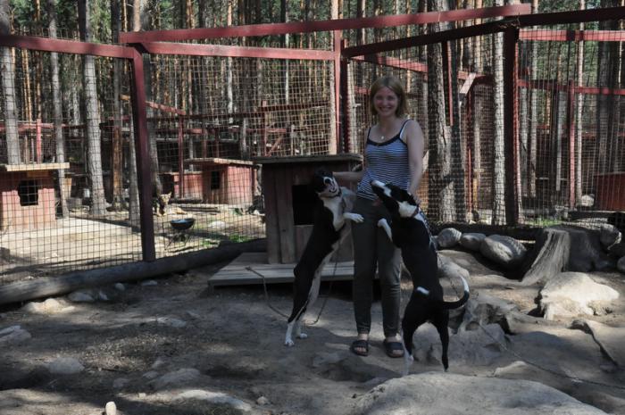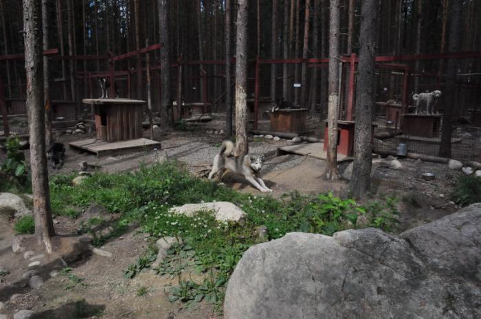 Теперь про собачек. Питомник в Кудаме – крупнейший в России и один из крупнейших в Европе. Живут там настоящие рабочие собаки, не раз занимавшие призовые места на международных соревнованиях, для которых работа, в буквальном смысле, все. Купить собачку в питомнике просто так, как диванного любимца, не реально. Щенков сибирских хаски можно купить только если ты спортсмен, докажешь это и сможешь создать все условия для полноценной собачьей жизни. Аляскинских хаски если и продают, то только подготовленными упряжками профессиональным спортсменам или другим питомникам. Все это нам рассказали на экскурсии, когда мы пошли познакомиться с собачками поближе.