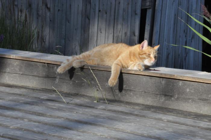 А в это время, своей законной доли с рыбалки ждали кудамовские коты. Рыжий, материализовался буквально из ниоткуда, как в мультиках, через три секунды после того, как в первый раз было произнесено слово «рыбалка». Сел и уставился на двери тех номеров, откуда должны были появиться рыбаки. Потом проводил всю честную компанию до пирса и сидел там все четыре часа, отлучившись лишь буквально на минуточку, проверить готовность шашлыка у других соседей.