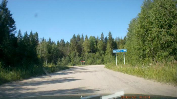 Второе – дорога начала ощутимо портиться. До Вытегры асфальт средней степени убитости, временами попадаются свежеотремонтированные участки, временами – убитые в хлам. Общее количество ям, колдобин трещин и т.д. не поддается никаким подсчетам, смотреть приходится в оба глаза. Перед поселком Депо навигатор командует поворот налево, и мы попадаем на первые 3 километра вообще без асфальта.