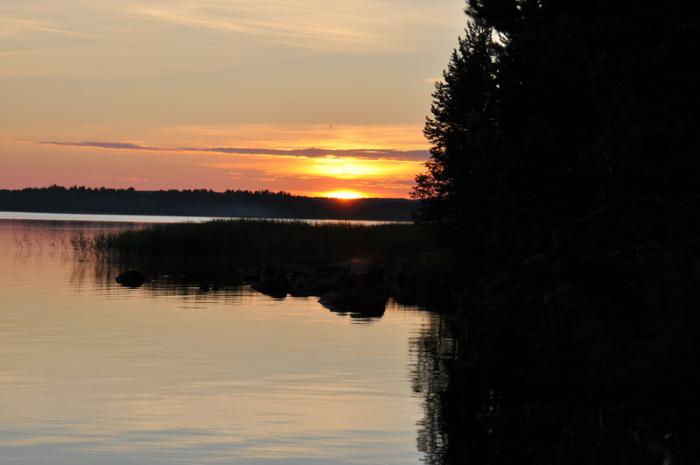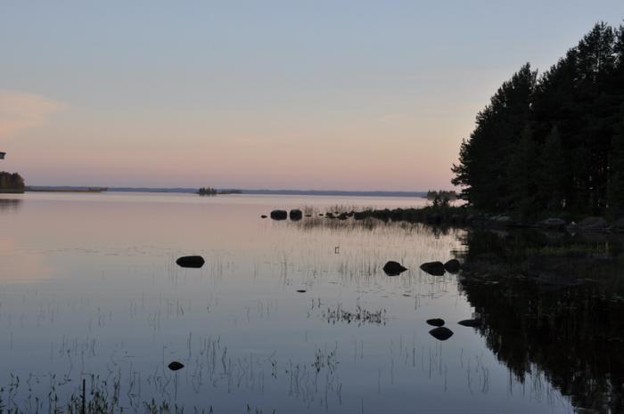 К сожалению, пришла пора прощаться с Кудамой и перебираться поближе к Финской границе. 27 июля, не самым ранним утром (10:25), потихонечку стартуем. Снова грейдер, потом немного хорошего асфальта в перемешку с асфальтом не очень (всетаки решили немного срезать, что-бы не делать приличный крюк через Петрозаводск), и вот мы выезжаем на трассу «Кола» (Р-21) в районе Крошноозера. Это уже совсем другая дорога – ровный асфальт, свежайшая разметка – словом, почти Европа, да и неудивительно, ведь по этой дороге туристы из Финляндии едут в Петрозаводск. Не доезжая километров 60 до Сортаваллы сворачиваем на А-130 (Олонец-Вяртсиля) и проехав через Вяртсиля, сворачиваем на очередной грейдер и проехав по нему 6 км, вдоль берега озера Янисъярве, в 15:10 прибываем на турбазу «Арсенал», пройдя за день 286 километров.