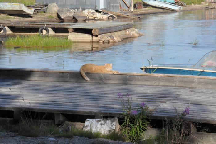 Котов на базе мало, всего штук пять, но заслуживают они огромного уважения! Дело в том, что при базе существует собачий питомник – 150 первоклассных, ездовых, сибирских и аляскинских хаски!!! И собачек этих периодически выпускают свободно побегать… Не всех, конечно, сразу, а группами, хвостов по двадцать. Далеко не каждый кот выживет в таких экстремальных для кошачьего племени условиях.