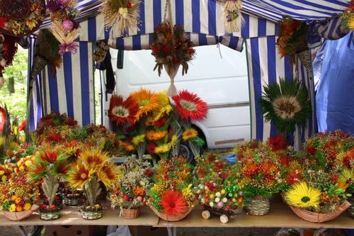 Перед забором замка небольшой стихийный рынок, где местные умельцы продавали много всяких подделок, в основном почему-то грибы и ёжиков. Даже нет, правильней было бы сказать, что только грибы и ёжиков. Как-то здесь наверное ёжики в почёте :).