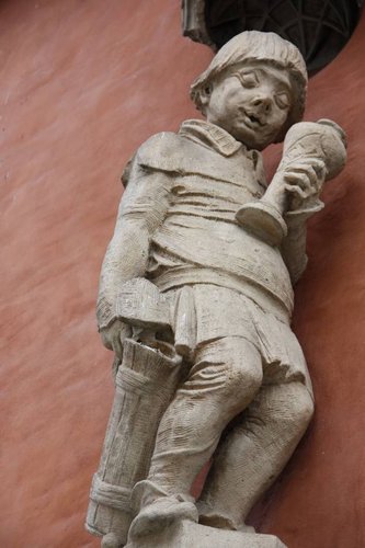 После поселения сразу отправились искать место для ужина, точнее, само место у нас было выбрано заранее, просто оставалось его найти. Во Вроцлаве находится самый старый в Европе ресторан *Свидницкий подвал*, и по многочисленным отзывам именно здесь можно отведать лучший в Польше *журик*. Ресторан нашли быстро и без труда, он находится прямо в здании ратуши и действует здесь с 1295 года. Вход у него довольно помпезный, с забавными скульптурами на фасаде.