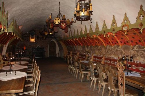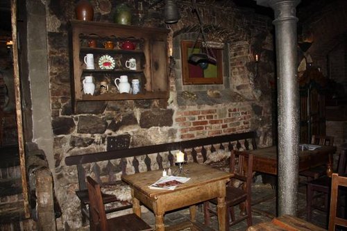 Ресторан тоже оставил очень двойственное чувство, вроде самый старый в Европе, то есть он него духом старины должно разить, и он должен удивлять разными вещами, которых у других быть не может. А на деле, кроме интересных кирпичных сводов, там нет вообще ничего примечательного. Дешевые декорации из фанеры и папье-маше, жестяная имитация кованых вещей и т.д и т.п. В общем, разводка для туристов и особо ловить там нечего. Да и цены выше чем то того стоит, и выше намного.