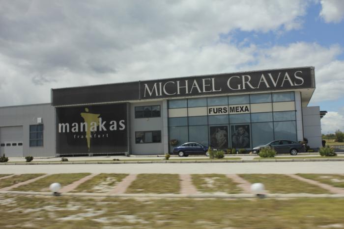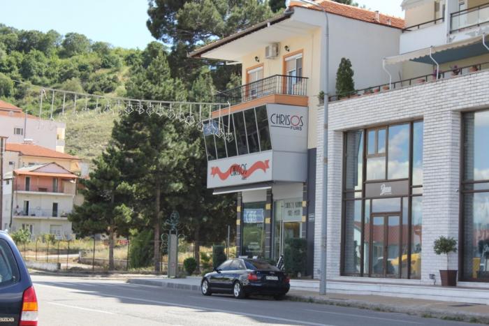 Утром завтрак и на колеса. Первым делом заехали в Rizos, нас встретил харизматичный грек – Демис. По русски на общие темы разговаривает плоховато, но что касается меха и цен – тут практически отлично. Через 5 минут он без нашей подсказки знал, что мы живем в их отеле, хотя нас видел впервые. Меряем шубку, спрашиваем цену, он считает на калькуляторе – 3500, считает дальше, со скидкой – 3200, считает дальше, для вас – 3000, 10 секунд раздумья, ну самый минимум 2700 (в данном примере я взял абстрактные цифры). При покупке от самого минимума можно скинуть еще немного. Посоветовал поездить, посмотреть у других продавцов, он в обиде не будет (были и прямо противоположные заявления). Координаты площади для парковки 40° 31.235', 21° 15.540'. От Демиса направились по улице Athanasiou Diakou в направлении выезда с города. Передвигались на машине, но на этой улице магазинов сравнительно не много. Поднимаемся на улицу Grammou дальше от озера и почти все строения до соседней деревни – фабрики.
