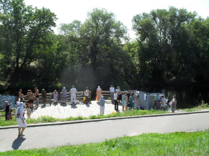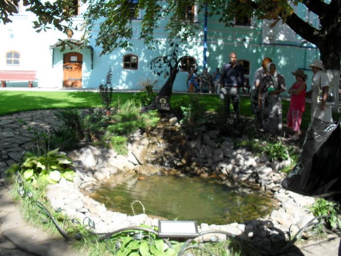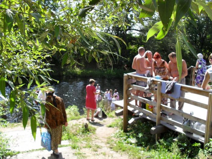 Помолившись народ направляется к святому источнику-набрать водички, искупаться.Тут, правда цивильный спуск почему-то закрыт.