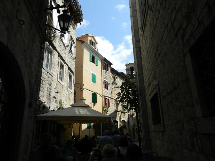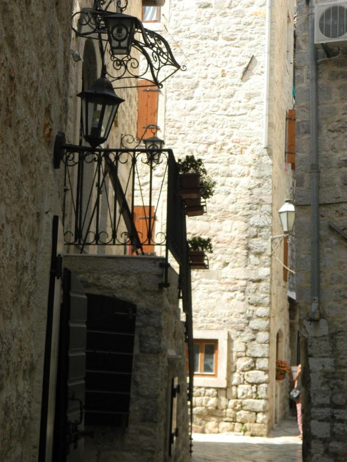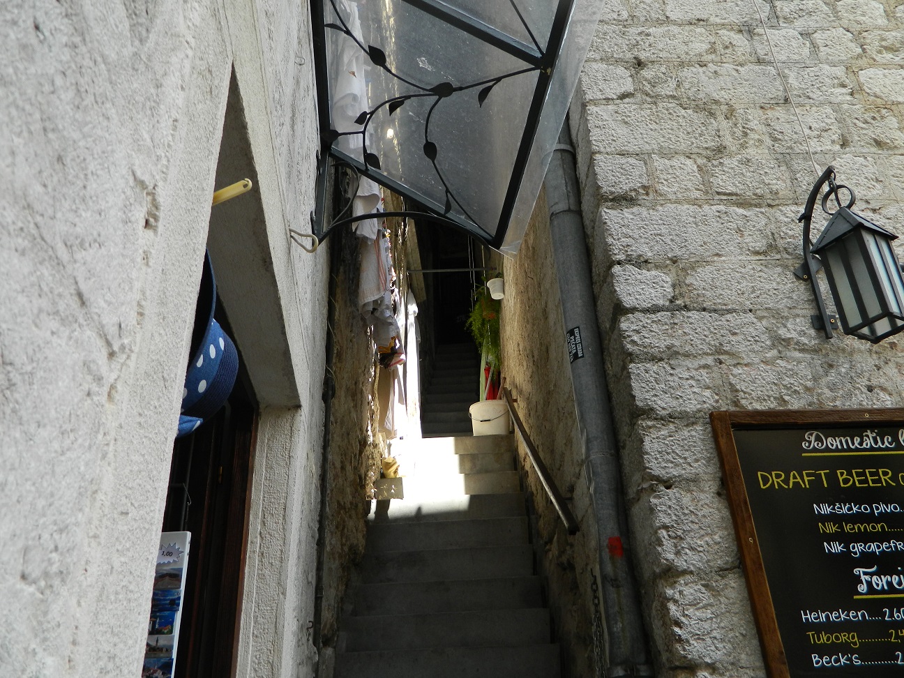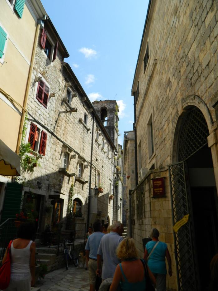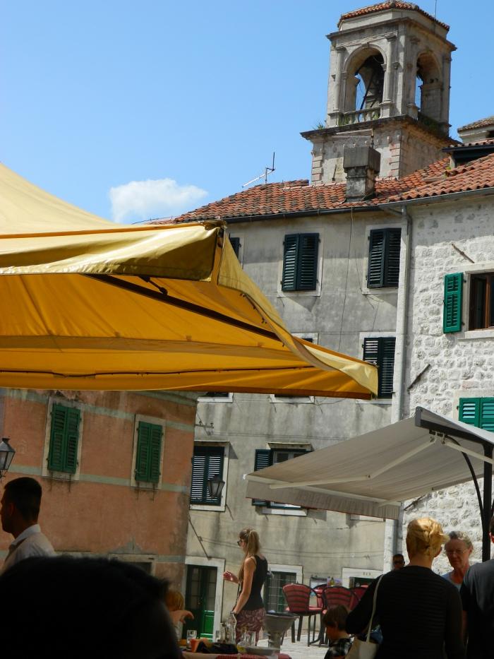 В городе скорее ищите парковку, коих здесь множество, оставив машинку за 40 руб час. бегите изучать старый город Котор)Там очень «олд-скульно» и самое главное это полностью живой и функционирующий жилой район с развешанным бельем на балконах, — в узких улочках, растущими апельсинами на крышах домов, и отдыхающими местными жителями в закоулках. Внутри города, в это время было много групп туристов итальянцев, с того самого лайнера, прибывавшего в заливе. Под итальянские разговоры мы не торопливо прогуливались по городу,-заходили за каждый дом, боясь пропустить из вида фотообъектива ещё какую-нибудь интересную улочку)Поднявшись на стену города, можно рассмотреть крыши старого Котора, а если вы ещё не устали(чего не скажешь о нас), то можно подняться по каменной лестнице в горы, — к крепости святого Ивана преодолев 1400 ступенек, за что получите удовольствие от красот на южного фьёрда Бока-Которска с высоты 280 метров! В следующий раз мы обязательно поднимемся, а всем кто ещё не был, советую!!!