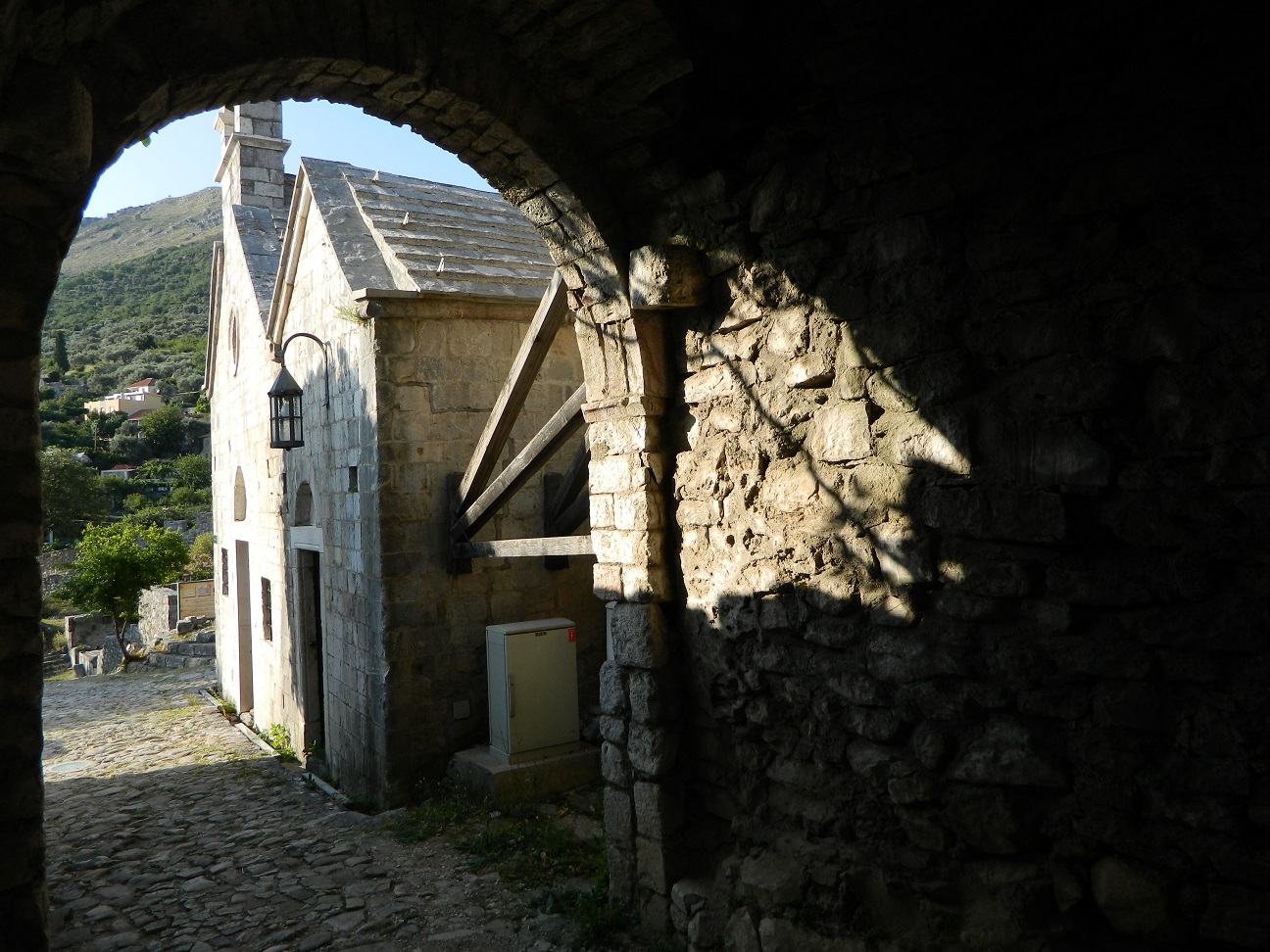 На обратном пути из Которы, вы не пропустите много указателей на исторический, средневековый город-руины БАР. Стоимость входа 2 евро на двоих. Людей мало, так-как, по большому счету и смотреть нечего: разрушенные стены, церквушка, останки крепости и старых домов. Всё облагорожено, приятно находится, и гулять в таком месте, изучая «тайны древности» и историю города.