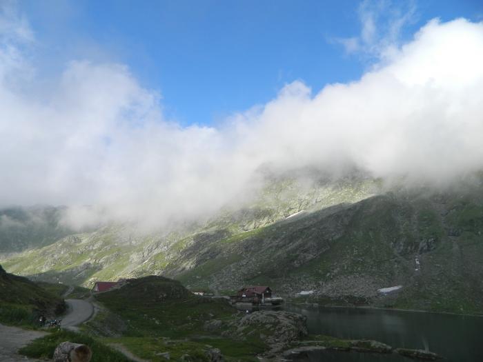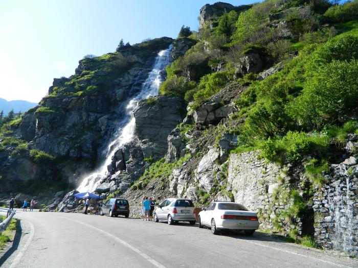 Начиная от населенного пункта Куртя-Арджеж, по дороге встречаются многочисленные водопады, которых здесь как деревьев, а на высокогорной трассе можете сразу закрывать окна и включать печку, — за бортом становится очень холодно, по дороге лежат сугробы снега и дует холодный горный воздух Карпат, нагоняя облака, до которых можно «дотянутся рукой». И это — июль, пусть и на высоте 2034 м.