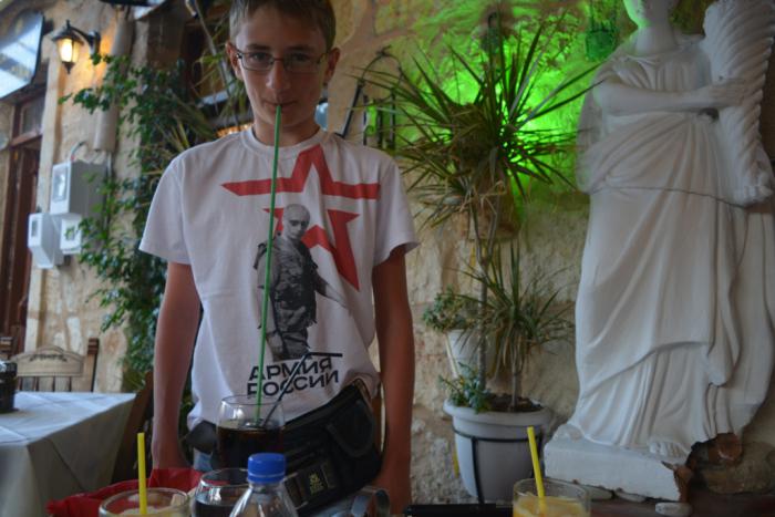 Зашли в «Vergina»… нас вспомнили! Обслуживали, как СТАРЫХ ДОБРЫХ ДРУЗЕЙ!.. А когда мы сказали, что приехали к ним из Ханьи… даже сбегали, купили и подарили нам подарок на память! Ох уж это Критское гостеприимство! Попугай правда другой был «Пеле», стали спрашивать, а где наш старый добрый Око, сказали, что в этом году поменяли местами попугаев в тавернах «Вергина» и «Вергина 2». После ужина пришлось идти в «Вергину 2». Если бы вы видели, как обрадовался попугай! Он реально узнал моего старшего сына! Еще в прошлом году, в таверне говорили, что попугай не всем дается погладить и почесать его, а Максима моего он ждал, и сразу подставлял холку! Так и в этот раз, мало того, что кричать стал и на качелях танцевать… так еще и сразу, сквозь клетку, холку стал подставлять! Работники таверны в начале даже не поняли, что случилось. Почесал сын попугая… тот довольный был… кричал, раскачивался… Эх… ностальгия прямо. А вот с магазином «облом» случился… и выбор большой… как и в прошлом году… но… походили мы походили… продавцы активно что-то обсуждают у кассы… на нас даже внимания не обратили! Обиделись мы, и уехали, ничего не купив!