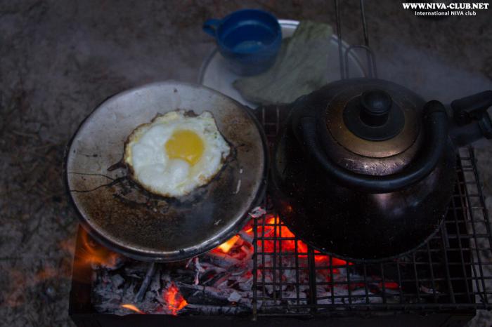 Правда, уже темно и холодный ветер с озера пробирает до костей, методично поливает с серого неба, но, в свете фар, споро, без лишней суеты ставится тент и лагерь, находятся умеренно сырые дрова, собирается мангал (чтобы не жечь на земле).