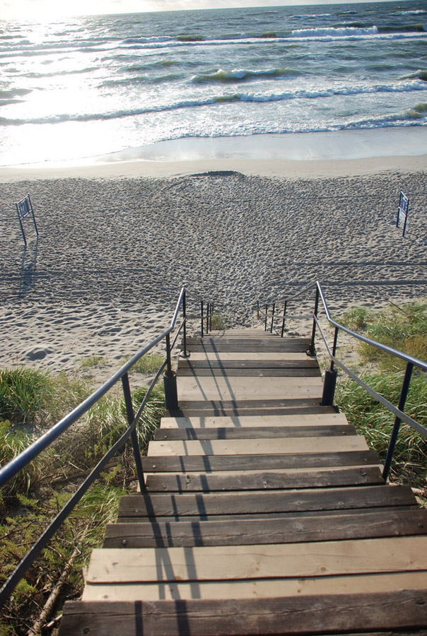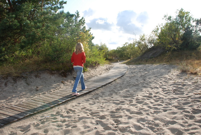 Дорога на пляж из кемпинга совершенно не утомительна, т.к. она проходит, немножко через лесной массив, дальше остается перемахнуть через дюну и вот вы уже на шикарном песчаном пляже Балтийского взморья.