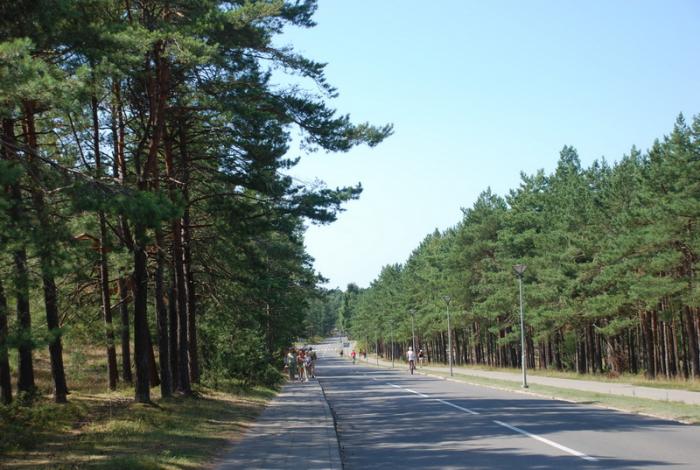 По всей Куршской косе проходит велосипедная тропа. Вдоль тропы оборудованы места для кратковременной остановки и указателями наиболее посещаемых объектов. По велосипедным дорожкам то и дело туда-сюда снуют велосипедисты, причем от мала до велика.