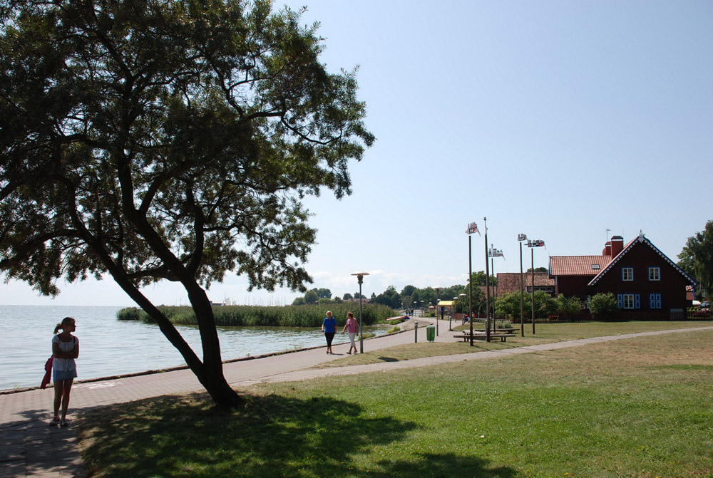 Здесь же расположены основные сувенирные лавки, музеи и магазин. Вдоль набережной находится множество кафе и небольших ресторанчиков. Уютную атмосферу вам придадут обходительные официанты (многие из них говорят по-русски) и изумительный вид на залив. Обед на троих в любом из ресторанов, включая по бокальчику пивасика 0,5 l (исключая ребенка) вам обойдётся в среднем 120 лит.