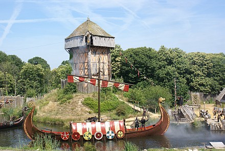 Парк Пью де Фу — вот наша цель на этот день. Брис и Каролина разбегаются с утра по работам и мы позавтракав, просто захлопываем за собой дверь в доме. Всего 60 км пути от Нанта и вот уже гигантская, практически пустая, парковка перед парком. Покупаем билеты, слава Богу — имеются семейные за 120 евро на всех, берем расписание шоу и обнаруживаем, что шоу «Викинги» начинается буквально через 10 минут в другом конце парка. Мчим, как дикие мустанги и успеваем вовремя. С первых минут представление захватывает настолько, что я забываю фотографировать и почти вручную захлопываю себе рот. Пересказывать его нет смысла — это надо увидеть!