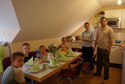 Много времени тратим на шопинг в приграничном торговом центре и до Карлштейна добираемся только часам к семи вечера. Довольно быстро на месте находим пансион и после недолгих переговоров, берем две уютных комнаты с завтраком за 80 евро. Немного погуляв по пустеющей улочке, ведущей к замку, едем ужинать. Увидев название ресторации «У Мани в Требани», не смогли не остановиться -все оказалось, как всегда в Чехии — много, вкусно и весело…