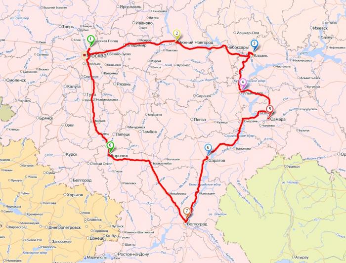 Маршрут: Подмосковье — Нижний Новгород — Казань — Ульяновск — Самара — Тольятти — Москва — Подмосковье