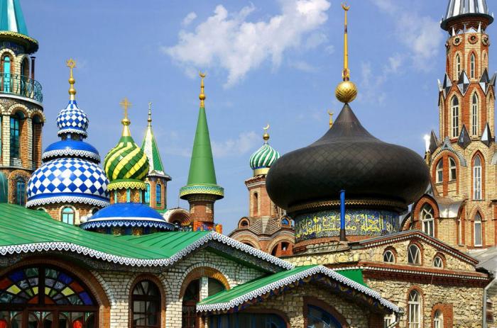 Очень понравилась идея Вселенского храма. :) А с Казанью ассоциируются крайне плохие водители, которые вообще никому не уступают и несутся, несутся, несутся.