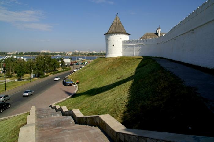 Будний день, людей не очень много, жарко. И красивый вид на Кремль. Уже дома, вернувшись из поездки, случайно понял, что такой вид был далеко не всегда. Первоначально Казань застраивалась не на берегу Волги и даже не у Казанки, а возле озера Кабан. И лишь после разлива Куйбышевского водохранилища в середине 50-х годов прошлого века, вода подошла к стенам Кремля. Может быть я и ошибаюсь — поправьте, пожалуйста, если кто знает эту историю лучше.