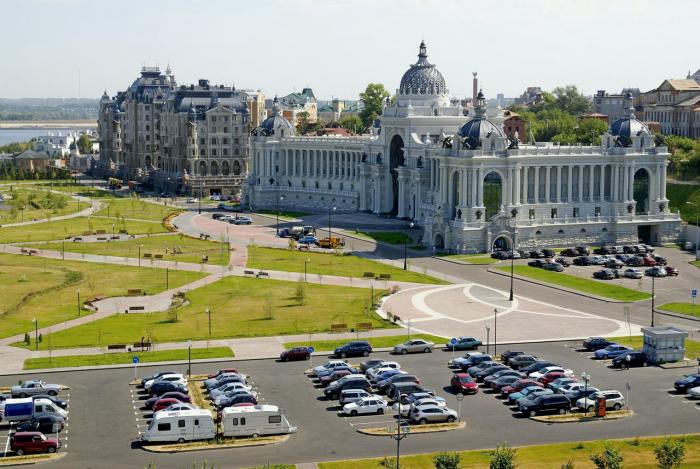 Тот район центральной Казани, где мы стали искать гостиницу, застроен невысокими домами. Улицы пересекаются под острыми углами — эдакое множество параллелограммов. То тут, то там — на перекрестках — возвышаются мечети. Проезжаем рынок, и количество людей вокруг напоминает восточный базар.