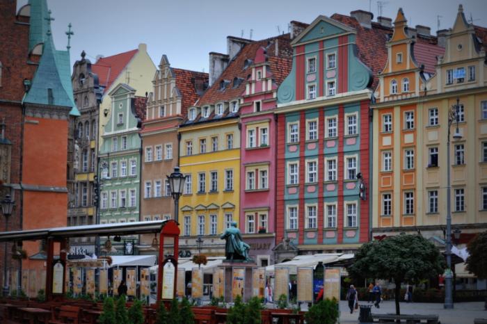 Итак, мы в Вроцлаве. Утром завтрак (шведский стол входит в стоимость проживания) сбор вещей и на экскурсию в центр города. Своей автомобиль пришлось втиснуть на бесплатной стоянке забитой местными машинами, рядом находились почти пустые парковочные платные места, пожалев время на то, что бы разобраться с автоматом оплаты отправились пешим ходом по историческим улочкам Вроцлава, прихватив с собой фотоаппарат.
