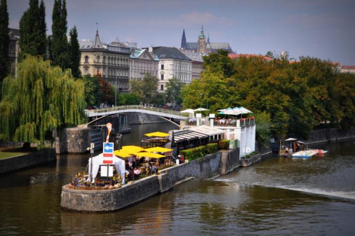 Прогулка по городу началась с посещения итальянского ресторана на берегу реки Влтава,
