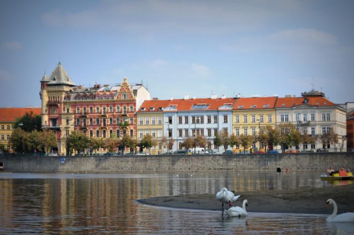 любуясь красотой лебедей плавающих вверх и вниз по течению реки мы сели на катамаран и поплыли к ним поближе. Особенно, интересно доченьке, она каждый раз пыталась нам помочь управлять «нашим судёнышком» направляя его рулём то на лебедей, то на уток. Весь день мы гуляли по столице Чехии и лишь к вечеру пришли домой.
