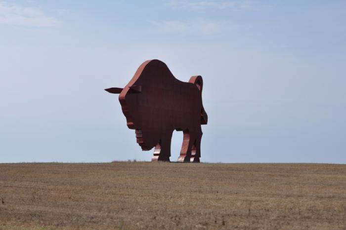 В столовой советского типа вкусно пообедали, расплатившись 70-ю тыс. рублями. На пути из Минска в Брест увидели силуэт гигантского зубра стоящего в поле – символ здешних территорий.