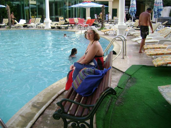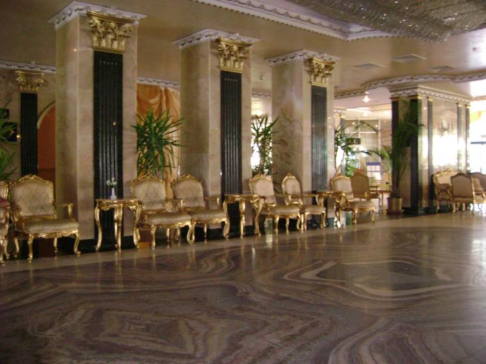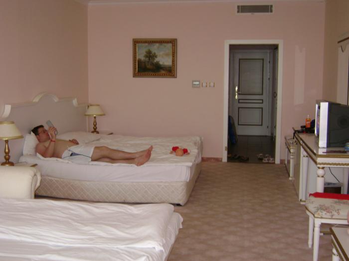 В целом впечатления от положительные, номера не плохие, просторные, очень понравилась система кондиционирования, в отеле и в номере прохладно. Питание в ресторане достаточно разнообразное и богатое, меню старались постоянно менять, баловали иногда свиными ножками, белой рыбой, кальмарами, мидиями (не понравились). Отель расположен не на первой линии, до пляжа около 150 метров, но напряга по этому поводу нет. Отель считается 5*****, хотя нам его продавали как четверку с плюсом, что больше соответствует действительности, есть спа, фитнес, анимация для детей (мне показалась бестолковая, пытаются общаться с детьми на русском и английском, развлекательные номера какие-то корявые и на шару состряпанные). Вот со стилистикой отеля по-моему промахи сплошные, интерьер в каком-то королевском стиле замутили (ампир с барокко и еще бог знает с чем), названию не соответствует. Дорогие натуральные материалы вроде мрамора, оникса чередуются с откровенно бутафорной мебелью из крашенного дерева, причем часто краска облазит.